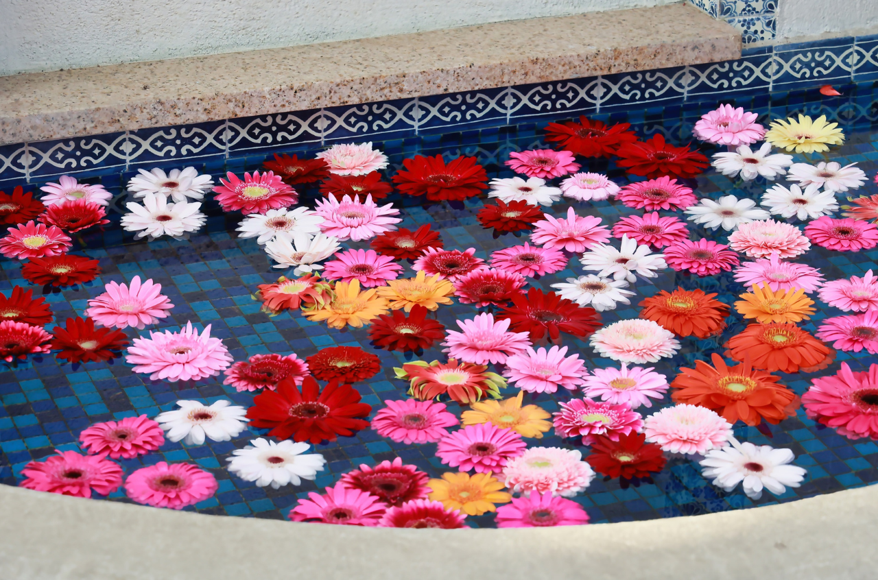 Un bain thérapeutique avec fleurs et laits pendant le séjour